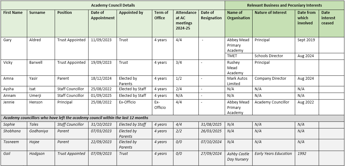 The Academy Council holds the Principal and school senior leadership team to account for the educational performance of the school and its pupils.